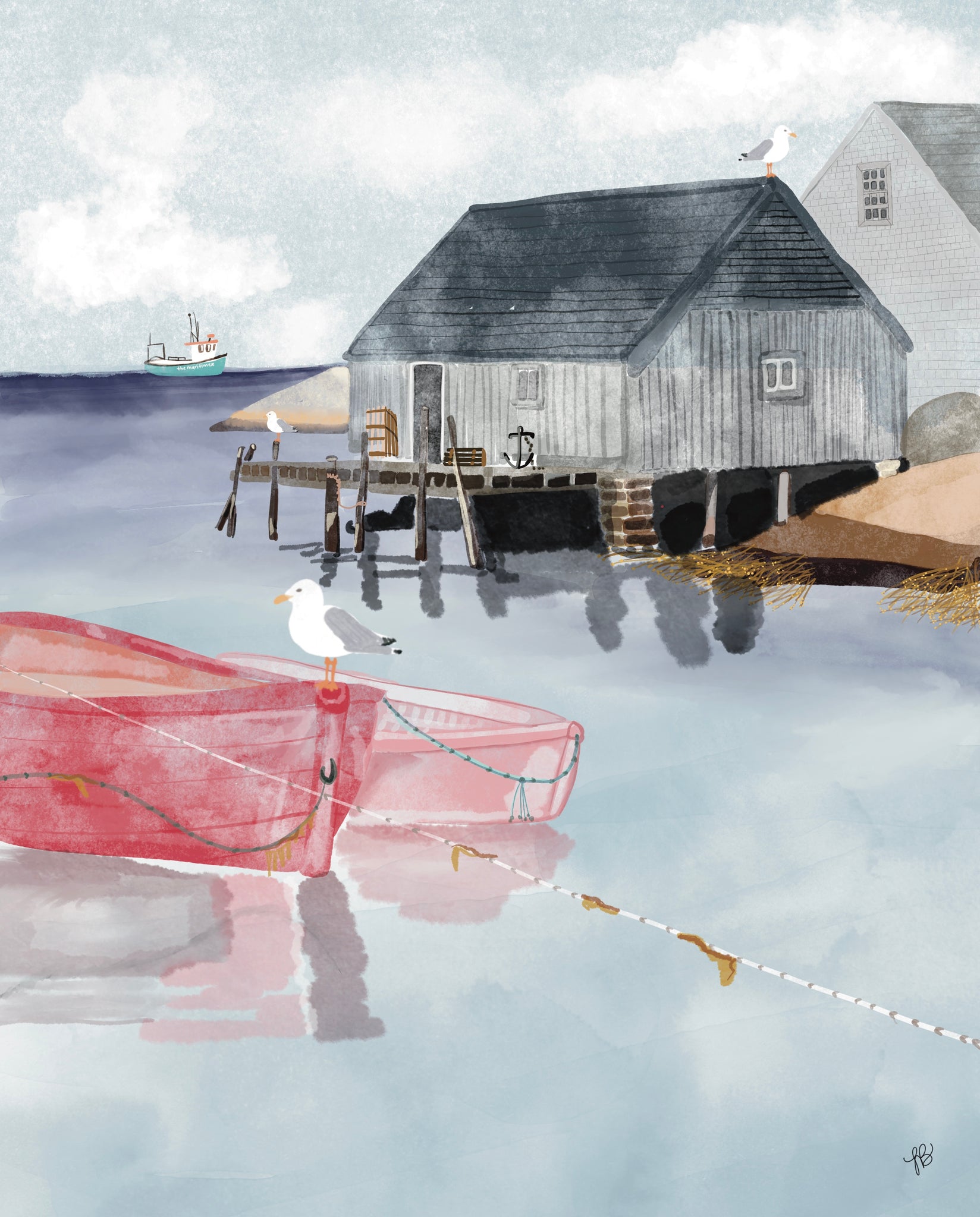 You can imagine breathing in the fresh, salty air as you take in this view of the little fishing village at iconic Peggy’s Cove. Description: •Does not include frame •8 x 10 inch print •Original artwork by Terri...Read more