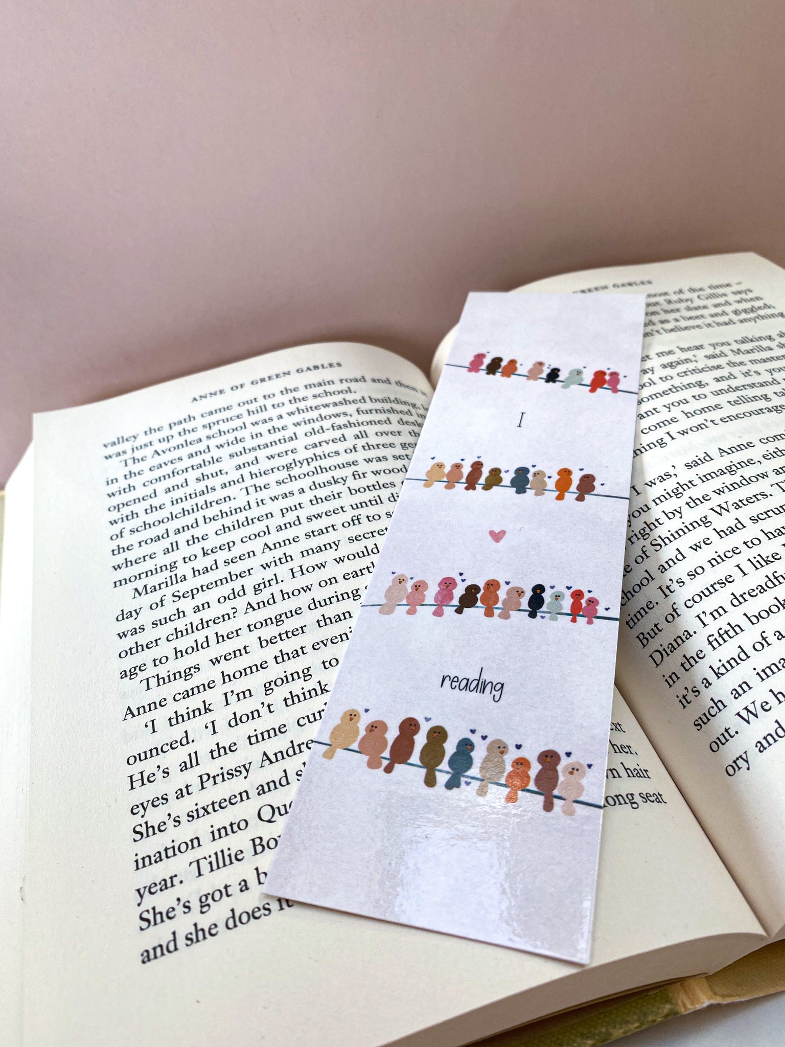 Colourful birds on a wire! I stated the obvious on this quirky bookmark… I ♥ reading so much! 📚