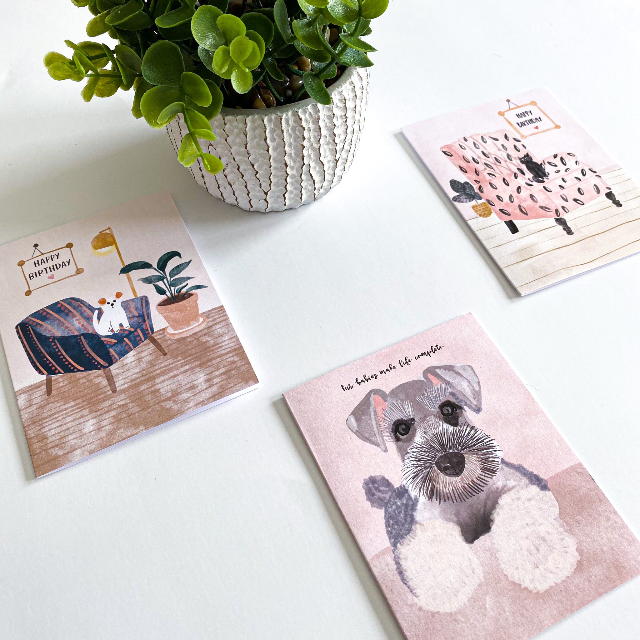 Say happy birthday to your favourite person with this adorable card! There's nothing cuter than coming home to the pup curled up on his fave chair...except maybe coming home to the cat :) Hand drawn original art 4.25”...Read more