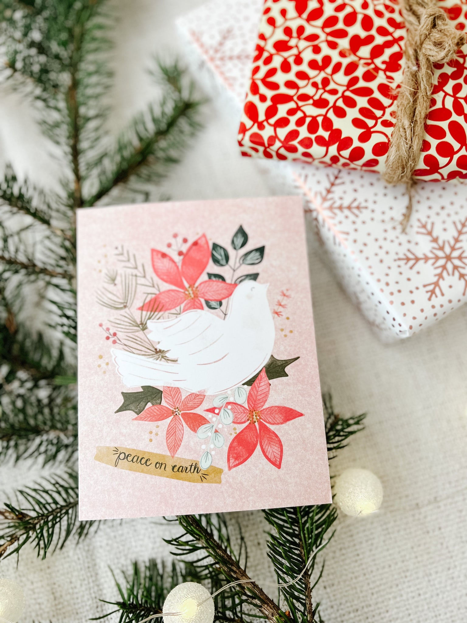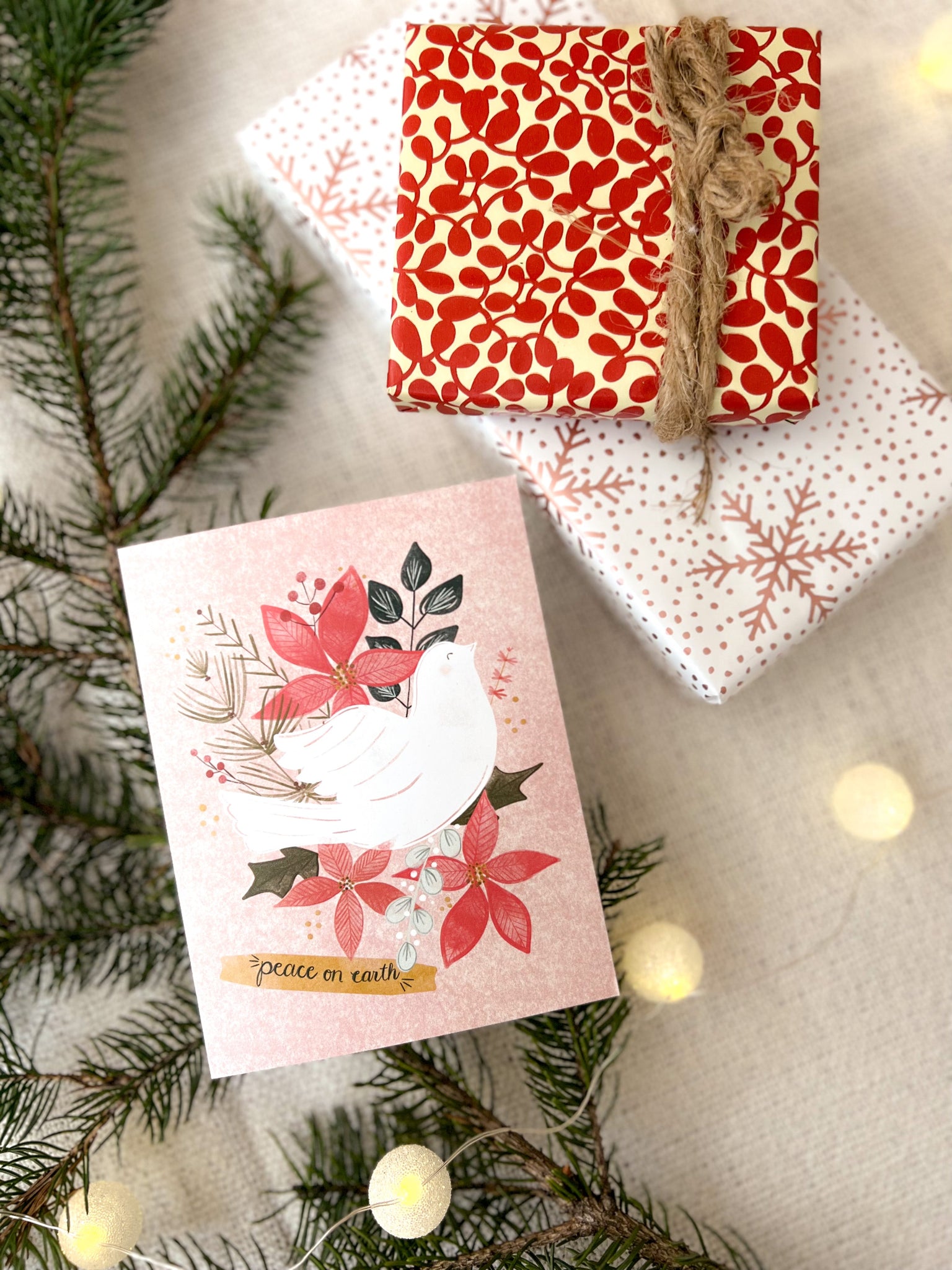This beautiful dove of peace conveys harmony to friends and family near and far this Holiday Season.