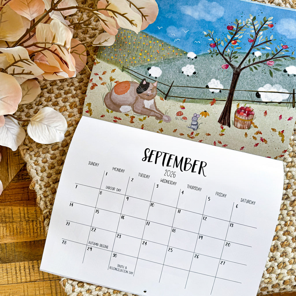 Our beautiful “The Cat’s Meow” calendar for 2026 depicts our furry friends in nostalgic full colour artwork. It is sure to warm your heart and bring delight! Perfect for cat lovers and lovers of thoughtful artwork alike.